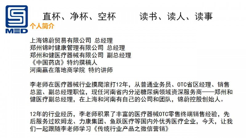 《傳統(tǒng)行業(yè)下之產品微信營銷(一)》——鄭州和健醫(yī)療器械有限公司 副總經理 李海勇先生