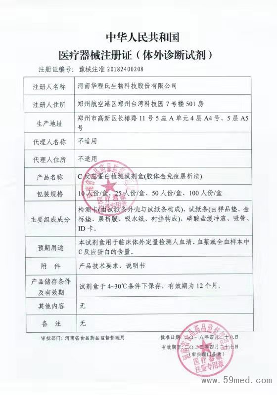 榮譽(yù)資質(zhì) 中華人民共和國醫(yī)療器械注冊證(體外診斷試劑)