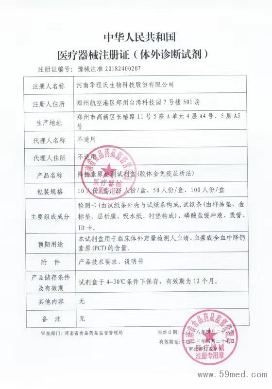 中華人民共和國醫(yī)療器械注冊證(體外診斷試劑)