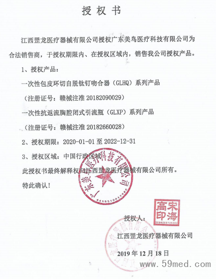 | 發(fā)證機(jī)構(gòu): | ??江西罡龍醫(yī)療器械有限公司 | 發(fā)證時(shí)間 : | ??2019-12-18 |