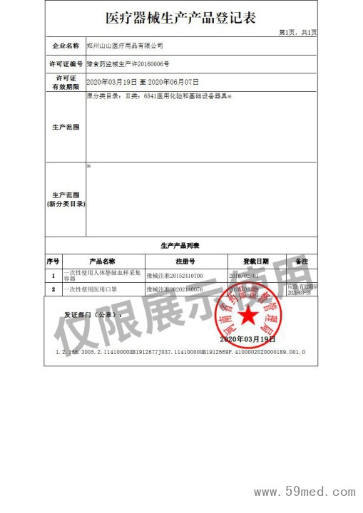 榮譽(yù)資質(zhì) 醫(yī)療器械生產(chǎn)登記表