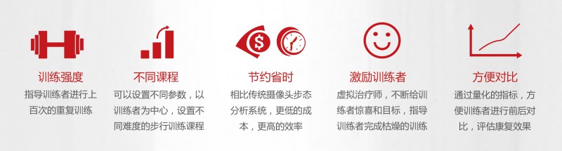 GaitWatch系統(tǒng)可以結(jié)合跑步機(jī)、平行杠、步行輔助器、天軌等進(jìn)行步行運(yùn)動(dòng)控制訓(xùn)練,激發(fā)訓(xùn)練者的積極情緒,逆轉(zhuǎn)傳統(tǒng)枯燥單調(diào)的訓(xùn)練模式。