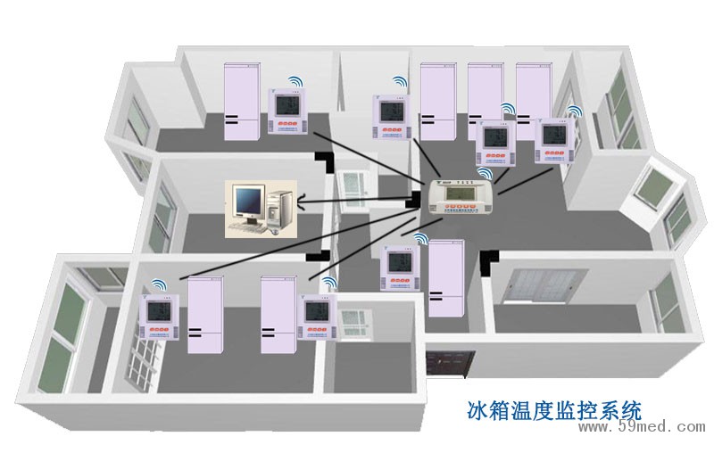 無(wú)線LORA短距離傳輸+無(wú)線管理主機(jī)方案應(yīng)用醫(yī)院檢驗(yàn)科冰箱、藥廠倉(cāng)庫(kù)等不方便,局域網(wǎng)或者一棟樓監(jiān)控方案:
