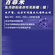 “百菲米”醫(yī)用防粘連改性殼聚糖(膜)安全有效。置入體內后短時間內與體液相互作用,形成一層膜狀結構,附著于組織器官之間,從而達到生物隔離作用。置放后逐步降解,不凝結成團形異物危害健康。能促進傷口愈合,從而預防因手術引起的有害粘連。●“百菲米” 醫(yī)用防粘連改性殼聚糖(膜)手感柔軟,折疊不易斷裂,韌性好,送入腹盆腔、腸管間伸展自如能平展放置,也能自由彎曲??梢宰詣诱澈希瑹o需縫和固定,對任何形狀、位置的創(chuàng)面可有效的保護而防止因手術引起的有害粘連的形成。 ●“百菲米” 醫(yī)用防粘連改性殼聚糖(膜)用于腹腔鏡手術,使用簡單方便。 [詳細介紹] |