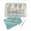 【產(chǎn)品結(jié)構(gòu)及組成】由基本配置和選用配置組成,基本配置由一次性使用敷料鑷子、口鏡、牙探針、托盤、一次性使用醫(yī)用橡膠檢查手套組成:選用配置由圍裙、檢查手套.壓舌板、止血鉗、負(fù)壓吸引接管、醫(yī)用非織造布敷料塊,醫(yī)用棉球、包布組成。